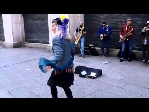 Rosalia Gállego Avila bailando con músicos y juntandose un joven